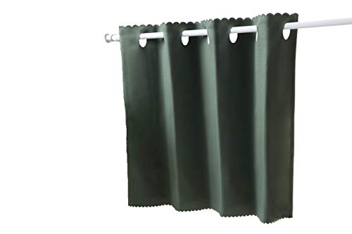 小窓用の遮光カフェカーテン。目隠し効果とおしゃれなデザインで、幅約100cm・約140cm、丈45cm・75cm・90cmから選べます。ダークグリーンの色合いが落ち着いた雰囲気を演出します。
