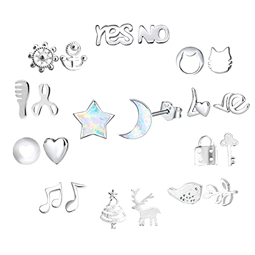 NEWITIN 11組の925スターリングシルバー製スタッドピアス。ユニコーンや動物デザインの低刺激性イヤリングで、かわいい小さなスタッドが女の子にぴったり。オパール石材使用。