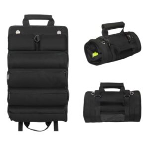 Kefeng ツールバッグ ツールロールバッグ 工具バッグ 車載工具 多機能 大容量 高耐久 6つ収納ポケット スパナ巻き袋付き 壁掛け式 肩掛けベルト 大工用 バイク用 作業用 車載 持ち運び便利 (ブラック) [並行輸入品]
