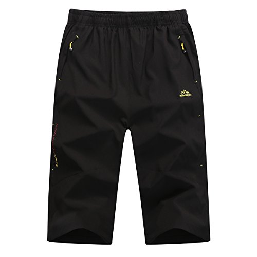 メンズハーフパンツ、七分丈のアウトドアスポーツ用。トレッキングやフィットネスに最適。速乾性があり、テニスやジム・部活でも活躍。カラー: ブラック、サイズ: S。