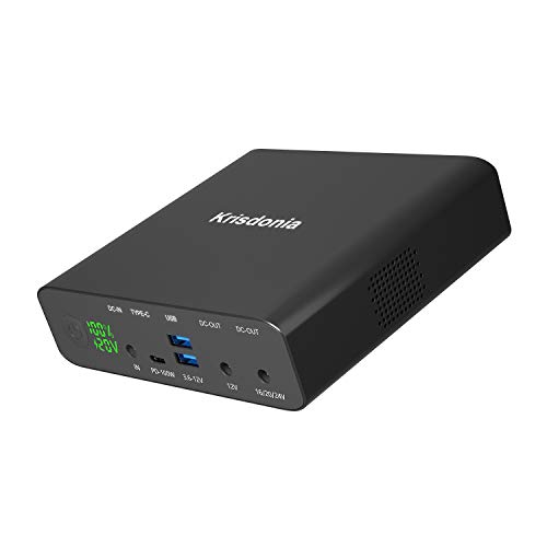 Krisdoniaのモバイルバッテリーは32000mAhの大容量で、急速充電に対応。出力はPD 100W、USB-A QC 3.0、DC 12/16/20/24Vに対応し、iPhoneやAndroid、MacBookに最適です。