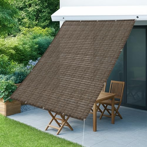 LOVE STORYの日除けシェード(200x300cm)は、透かし編みデザインのモカカラーで、涼風を通しながら日差しを遮ります。庭やバルコニーに最適なサンシェードです。