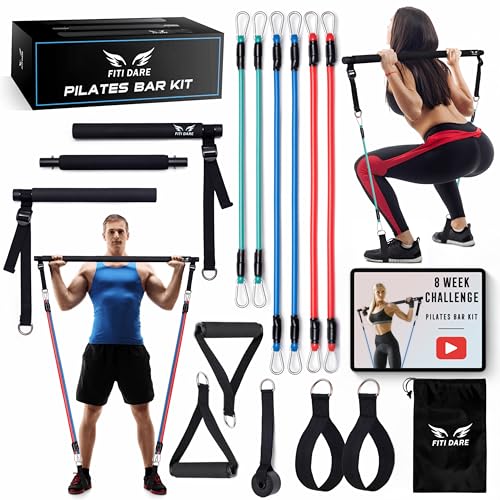 FITIDAREポータブルピラティスバーキットは、25kg、30kg、35kgの調節可能な抵抗バンド付き。全身エクササイズを促進する、男女兼用の家庭用器具です。