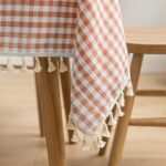 防カビ・厚手のコットンリネン製テーブルクロス。おしゃれなストライプデザインで、長方形(110*170cm)サイズ。滑り止め機能付きで、洗えるため手入れも簡単。ダイニングやキッチンの雰囲気を引き立てるアイテム。