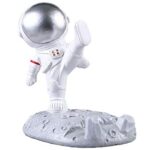 Fumemoの宇宙飛行士スマホホルダーは、かわいいデザインで卓上の置物にも最適。携帯電話をしっかり支え、楽しいインテリアグッズとしても楽しめます。足はシルバーで、おもしろいアクセント。