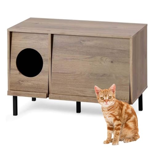 アイリスオーヤマのキャットトイレタリーキャビネットは、アッシュブラウン/ブラックの落ち着いた色合いで、高さ61.5cm、幅89cm、奥行48.9cmのサイズです。トイレ周りをすっきり整理でき、猫の快適さと飼い主の利便性を両立しています。