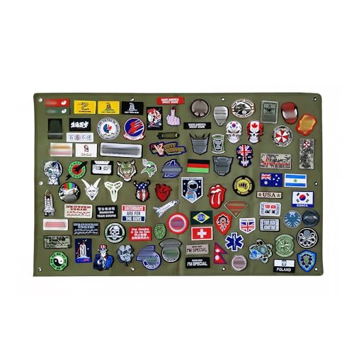 タクティカルパッチディスプレイは、ミリタリー向けの折りたたみ式ホルダーパネルです。サイズはグリーンで42.5×27.5インチ(108×70cm)。パッチを整理して持ち運びに便利。