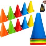BiAnYC 10本セットのマーカーコーンは、23cmサイズのミニカラーコーンで、サッカーや野球、テニス、フットサルの練習に最適です。5色展開で収納ポーチ付き。団体競技や運動会にも活躍します。