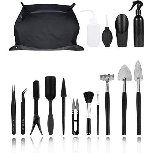 GENERISCH ガーデニングツールは、多肉植物や観葉植物に最適な15点または16点セットの園芸用品です。室内での庭造りに便利なハンドツールやじょうろが含まれています。