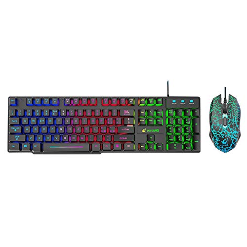 Qingyuguolinのゲーミングキーボード、マウス、マウスパッドセット。104キー、LEDレインボーバックライト、有線接続、英語配列で、WindowsやOSXに対応。人間工学デザインでゲームとオフィスに最適です。
