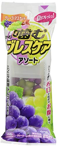 噛むブレスケア アソート 25粒は、口臭を気にせずにパッと噛めるおいしいタブレットです。ミントやフルーツ味のアソートで、手軽に口臭ケアができます。内臓成分が口内を清潔に保つサポートをします。