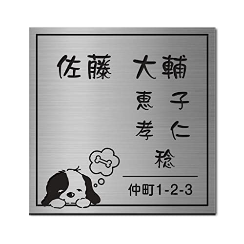 アクリル製の表札です。2世帯対応で、デザインや色が選べます。家族名や住所を入れられ、屋外での使用に適しています。貼り付けも簡単で、テープ付きです。サイズは100mm x 100mm、カラーは銀ヘアラインです。