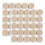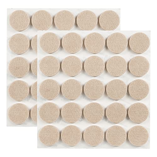 ギノヤの5mm厚フェルトパッドは、キズ防止や防音に優れた50枚入りの丸い家具保護パッドです。直径25mmのベージュ色で、さまざまな家具に最適です。