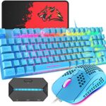 88キーの軽量ゲーミングキーボードと6400DPIのゲーミングマウスのセット。LEDバックライト、USB接続、防水設計。PC、PS4、Nintendo Switchに対応。マウスパッド、取扱説明書付き。