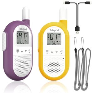 特定小電力トランシーバー 2台セット 軽量 小型 多機能 子供トランシーバー おもちゃ 充電式 長距離 省電力 無線機 免許不要 簡単操作 LCD ディスプレイ ネックストラップ・ベルトクリップ付属 紛失防止 携帯便利 エコ素材 災害・公園遊び・キャンプ等に対応 総務省技術基準適合商品 日本語取扱説明書 (イエローとパープル)