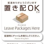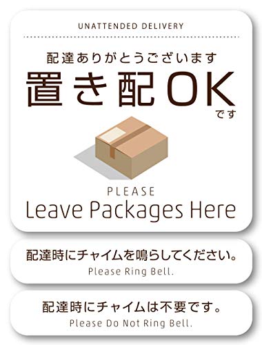 Isaac Tradingの置き配OKステッカーは、耐水・耐候性のマットホワイトシールです。チャイム鳴らして&鳴らさないでのオプション付き。サイズ70×64mmで、宅配ボックスや不在時の荷物配達に最適です。