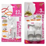 日軽産業のフック「マジッククロス8 J hook」セミトライアングルと天井フックのセット。前者は奥行1×高さ2×幅1.7cmでキャップ、取付ピース、予備クギ付き。後者は奥行2.75×高さ4.5×幅2.75cmで取付ピース、クギ付き。