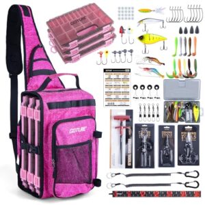 Goture フィッシングリュック ポータブルタックルボックス3個付き、ツール6点セット、餌セット、 シングルショルダーフィッシングバッグ 900Dオックスフォード生地 ロッドホルダー付き 鯉用タックルバッグ 耐久性のあるオックスフォード布製 防水 マルチポケット キャンプバッグ 12L ブライトピンク グリッターピンク