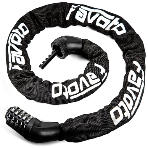 Favotoのチェーンロックは約114cm、8mmのダイヤル式で、5桁のパスワード変更可能。カギ不要の2層構造で盗難防止効果あり。ブラックで初心者向けの日本語説明書付き。