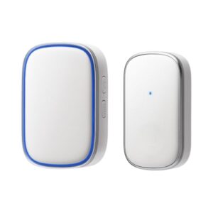 SleeZOO ワイヤレスチャイム 小型 玄関チャイム 送信機電池式 受信機AC式 115db大音量 音と光で呼び出し 工事不要 LED提示 メモリ機能 7段階音量調節 増設自由 インターホン 60種以上チャイム音 135M無線範囲 (ホワイト, 1送信機1受信機)