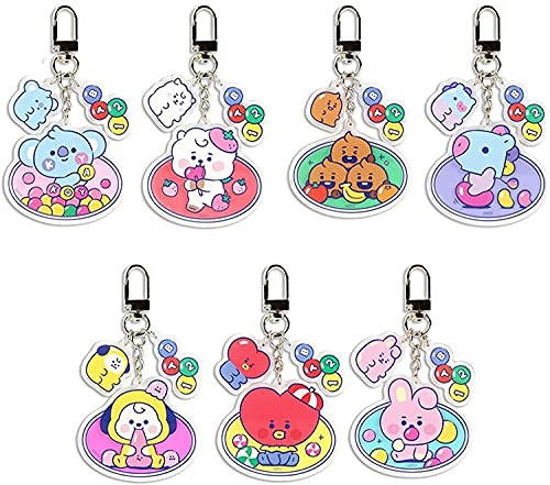 BTSのキーホルダーキーチェーン7点セット。多機能携帯スタンド付きで、Qバージョンデザインが魅力的。バックパックやかばん、車、鍵の飾りとして使え、人気の韓流グッズです。