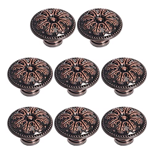 アンティーク調の引き出し取っ手(8個入)。直径31mmの単孔デザイン。花柄のレッドブロンズ仕上げで、タンスやキャビネット、食器棚に最適。DIYプロジェクトにもおすすめの金具です。