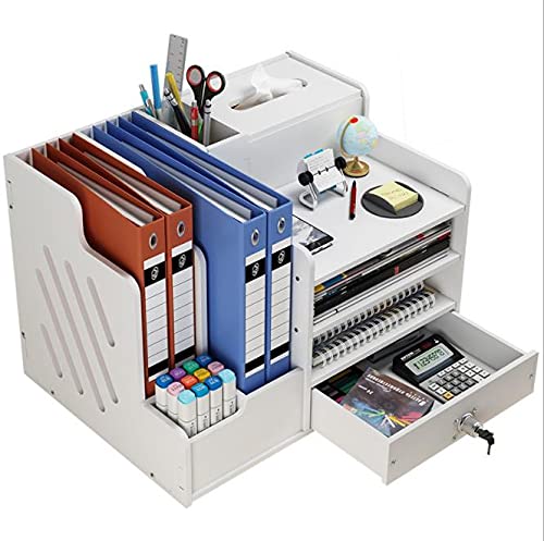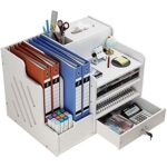アイリンの卓上収納ボックスは、大容量で小物や書類を整理するのに最適です。ティッシュケースや鍵付き引き出しが付いており、学校やオフィスで便利に使えます。