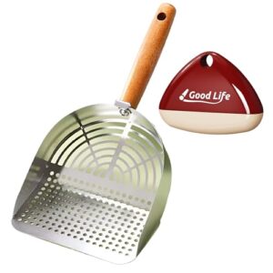 猫砂スコップ細かい ステンレス 猫用スコップ の使い心地 大粒分類 砂漏れ設計 頑丈で長持ち ペット用 お手入れセット 粘着ローラー 洗える メッシュ ひっかけ フック付 コロコロ ミニ 服についた猫の毛取り 猫 トイレ スコップ ひっかけ (レッドミニ粘着ローラー, 丸穴タイプ猫砂シャベル)