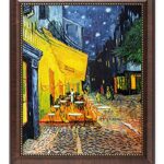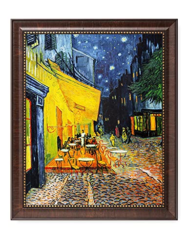 DECORARTSのヴィンセント・ヴァン・ゴッホ「夜のカフェテラス」フレーム付きウォールアート。アンティークブラウンフレーム、ジークレープリント。サイズは16×20インチ、全体19×23インチ。米国製です。