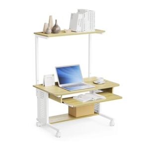 DEWEL ローデスク パソコンデスク 幅80×奥行50cm ロータイプ 360°回転キャスター付 収納棚&キーボードスライダー テレワーク/学習用 省スペース 耐荷重45kg 組立簡単 移動便利 おしゃれ
