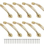 Life System(ライフシステム) 取っ手 アンティーク キャビネット引き出しドアハンドル プルハンドル プルノブ ドア取っ手 簡単取り付け ネジ付き D013 (ホワイト/ゴールド・10個セット) 高価買取中