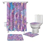 LHGBGBLNの4点セットシャワーカーテンは、カラフルな漫画キノコデザインで、防水性があり、バスルームに最適です。セットにはカーペット、便座クッション、フロアマットも含まれています。
