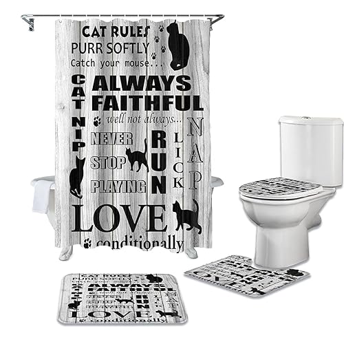 猫の木目調シャワーカーテン4点セットは、可愛らしい猫デザインと自然な木目が特徴。防水性、耐久性のある素材で、お手入れも簡単。セットにはカーテン、フック、マット、バス用品が含まれ、浴室をおしゃれに演出します。
