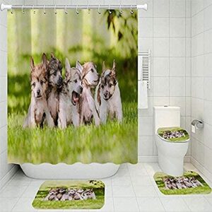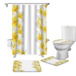 シャワーカーテン4点セット ホワイトは、清潔感あるデザインでバスルームを楽しく演出。カーテン、リング、マット、フックのセットで、簡単に取り付け可能。耐水性素材でお手入れ簡単。