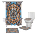 シャワーカーテン4点セットは、華やかな花柄デザインが特徴。耐水性素材使用でお手入れ簡単。セットにはカーテン、フック、マット、バスマットが含まれ、バスルームをおしゃれに演出します。