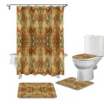 シャワーカーテン4点セットは、耐水性ポリエステル製で、カラフルでモダンなデザインが特徴です。カーテン、フック、マグネット、床マットが含まれており、バスルームを華やかに演出します。
