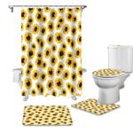 ひまわりシャワーカーテン4点セットは、鮮やかなひまわりデザインで、バスルームに明るさをプラス。防水性素材を使用し、カビ防止加工も施されています。サイズは標準的で、取付け簡単なフック付き。お手入れも楽々なアイテムです。