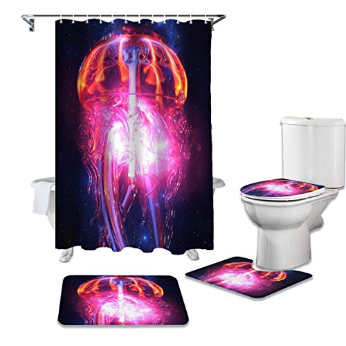 シャワーカーテン4点セット 宇宙テーマは、ユニークなデザインでバスルームを彩ります。防水素材使用、簡単取り付け、洗濯機対応。サイズも多様で、星や惑星の美しいプリントが特徴です。