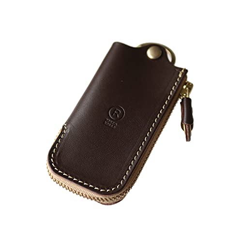 ポルコロッソのスマートキーケースは、栃木レザーを使用した本革製で、メンズ・レディース兼用。ブランドは日本製で、チョコ色にベージュファスナーが特徴。機能的なデザインで、スマートキーや通常の鍵を収納可能です。