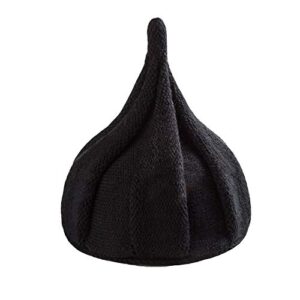 [LUAMY] とんがり ニット帽 レディース ねじり帽子 キャップ かわいい どんぐり帽子 秋 冬12色 (ブラック)