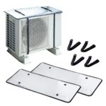アイメディアのエアコン室外機カバーは2枚組で、遮熱効果のあるアルミフィルムを使用。直射日光や雪から防ぎ、省エネや節電を実現。UVカット機能も備えています。