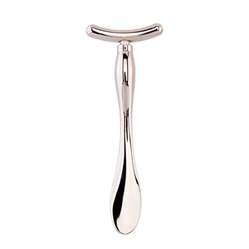 かっさプレート ミニメタルフェイシャルマッサージスティックT字型。持ち上がる顔のシワ取り、スリミング効果。美顔器としてフェイシャルケアに最適。カラーはシルバーです。