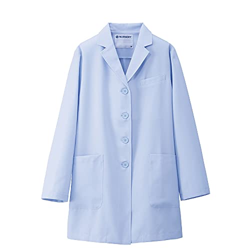 ナースリーのショート丈白衣(サックス)は、着心地と動きやすさを兼ね備えたデザイン。吸水速乾性素材を使用し、洗濯後もすぐに乾きます。医療現場での着用に最適な機能性とスタイリッシュなカラーが魅力です。