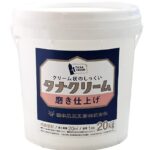 タナクリーム磨き仕上げ(20㎏)は内装用の練り漆喰で、ホワイト色。施工面積は約10㎡です。業界初のCNF配合で、日本製の自然素材を使用した塗り壁材です。