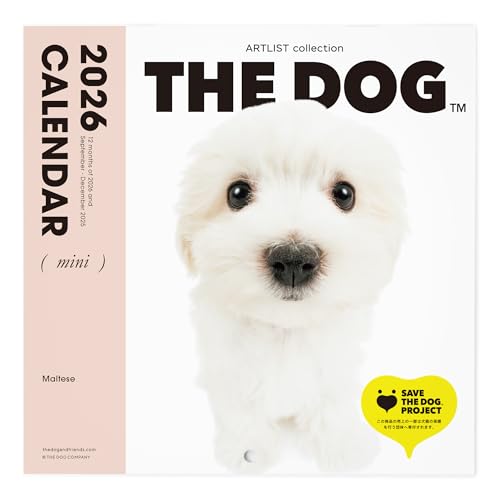 THE DOG カレンダー 2026 壁掛け ミニサイズ [マルチーズ]は、かわいいマルチーズの写真を掲載した、壁に掛けられるコンパクトなサイズのカレンダーです。毎月愛らしい犬の姿を楽しめます。
