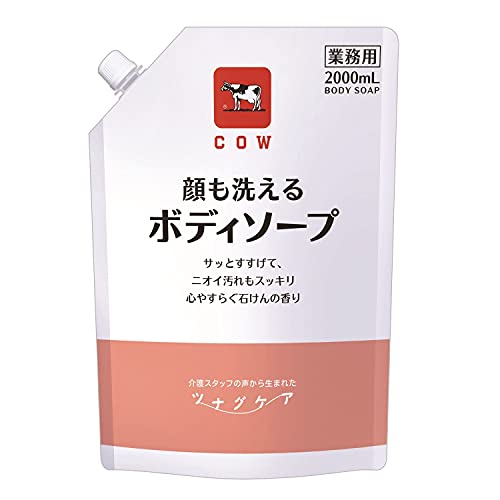 【業務用】牛乳石鹸 ツナグケア 顔も洗えるボディソープ 2000mL 素早い泡立ち 泡切れ 運びやすい 詰替えやすい 作業負担軽減 保管 綿タオル 不快臭ケア 高価買取中