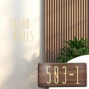 15cm角の正方形表札は二世帯向けで、アクリル素材を使用しています。屋外使用にも対応しており、マンションや戸建のポストに貼るだけで簡単に取り付け可能です。