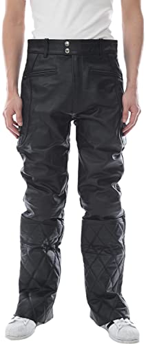Mo-LAWSのレザーパンツは、男性用の本革ライダースパンツで、膝にプロテクター付き。キルティング加工が施されており、バイクライディングに最適なLLサイズ(88)のブラックです。
