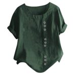 グリーンの春夏用リラックスルームウェア。ルーズなデザインで動きやすく、カジュアルなスポーツや家事、育児にも最適。大きいサイズ対応、麻と綿麻で快適な着心地。お洒落な7分袖シャツ。
