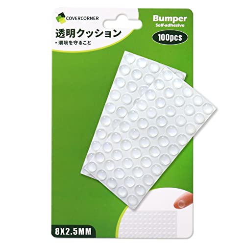 COVERCORNERの100粒入り透明ゴム足は、直径8mm×厚さ2.5mmの半球形で、家具の滑り止めや衝撃吸収に最適なシールです。粘着タイプでキズ防止効果もあります。
